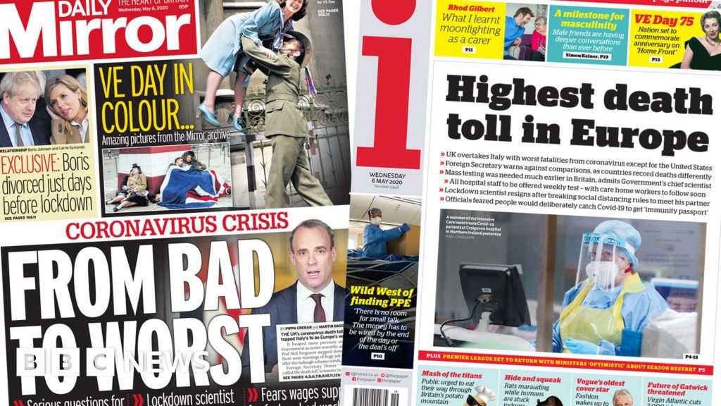 Getty ImagesThe news that more people with Covid-19 have died in Britain than in any other European country makes the front of several newspapers.